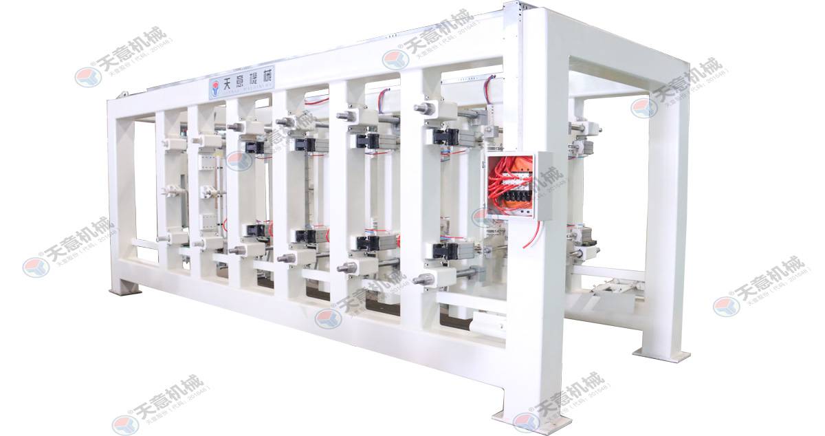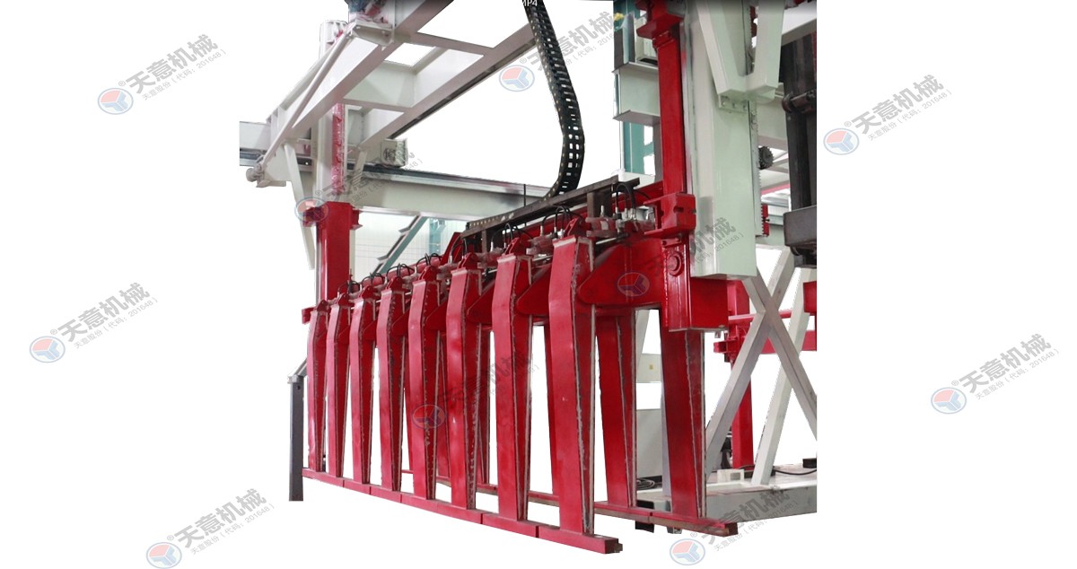 翻轉(zhuǎn)吊機:抓取模箱翻轉(zhuǎn)90°,側(cè)立在切割小車上進行切割;切割工段空翻脫模機將??蚍D(zhuǎn)90°,放在切割小車支座上進行脫模,脫模后的模框與清理后的側(cè)模板進行合模,合膜后的空模框被吊運至模具回程軌道上進行涂油處...