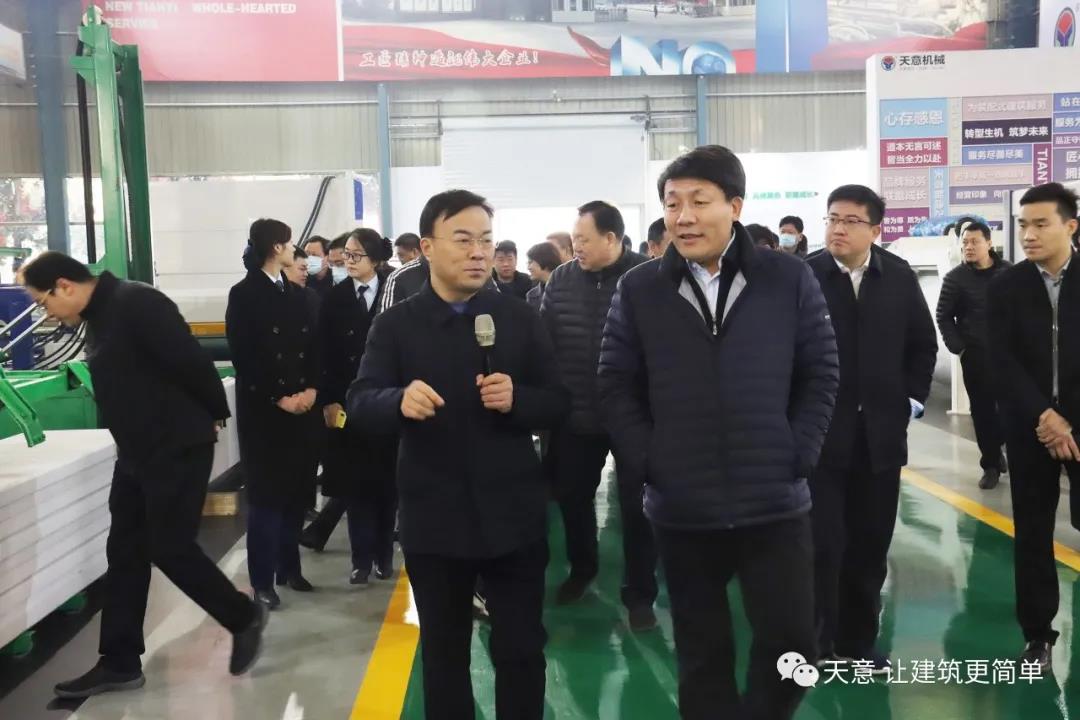 12月18日上午,鄒城市委常委、副市長欒濤一行蒞臨天意考察全市新舊動能轉換現(xiàn)場觀摩項目——裝配式建筑自動化PC生產線項目。兗州區(qū)委常委、區(qū)政府副區(qū)長、黨組副書記屈耀武,天意機械董事長劉洪彬陪同考察。