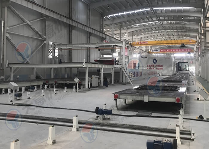 PC環(huán)形疊合板生產(chǎn)線采用高精度、高結(jié)構(gòu)強度的成型模具,經(jīng)自動布料機把混凝土澆筑其中、振動臺振搗后并不立即脫模,而是經(jīng)預(yù)養(yǎng)護、蒸汽養(yǎng)護,使構(gòu)件強度滿足設(shè)計強度時才進行拆模處理,拆模后的成品構(gòu)件運輸至成品暫存區(qū)或室外堆場,而空模臺沿輸送線自動返回,形成自動化環(huán)形流水作業(yè)。